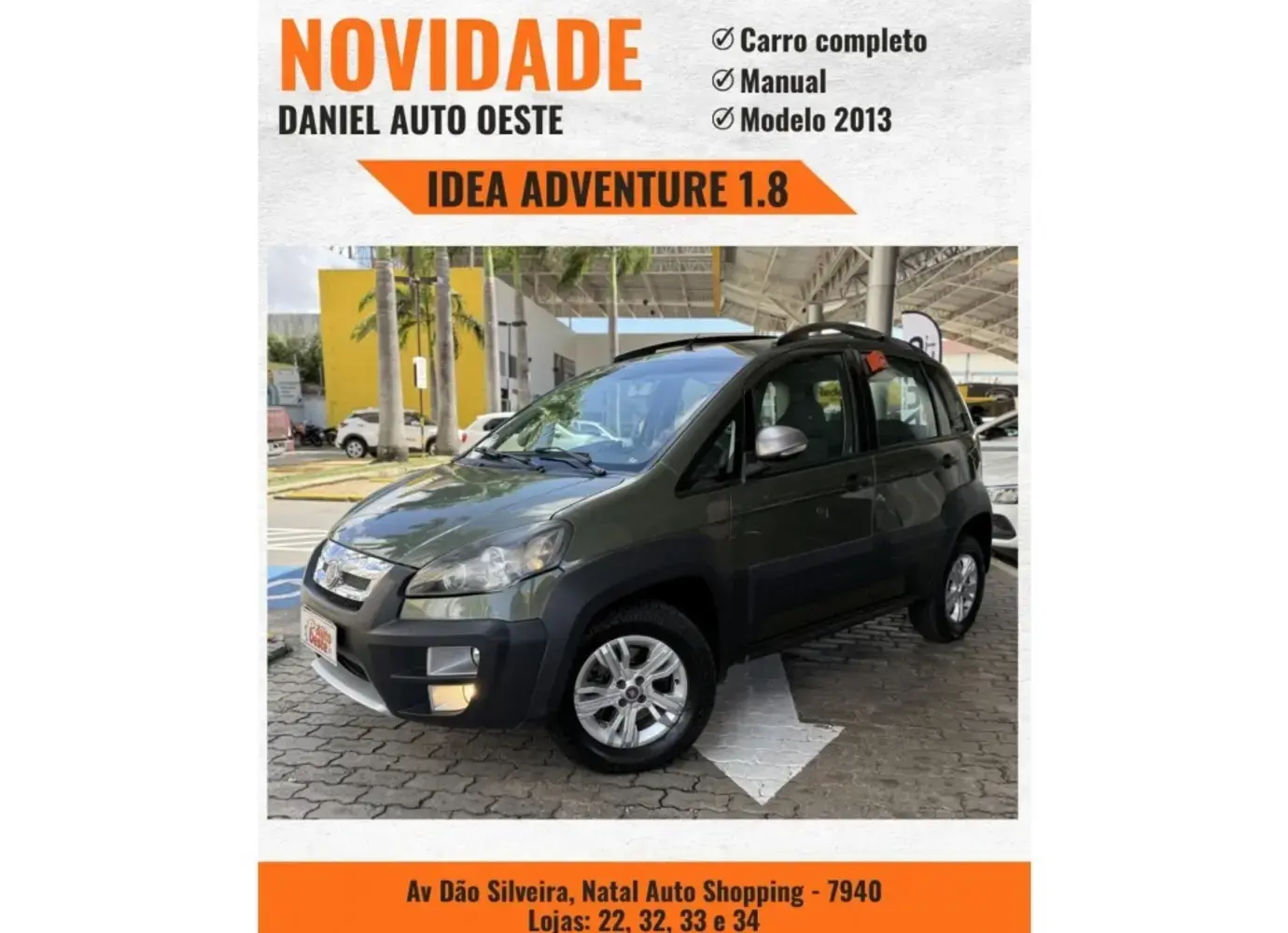 BEM-VINDO À DANIEL AUTO OESTE! Oportunidade!!! Baixo km. FIAT IDEA ADVENTURE MANUAL / 2013 * Veículo REVISADO * KM 127610 * Carro todo original A mais de 23 anos no mercado, (Aqui tem Procedência, Padrão e Qualidade). Daniel Autooeste: Av. Av. Dão Silveira, 7940 - Pitimbú, Natal - RN, 59066-180 - BR 101- ( NATAL AUTO SHOPPING ) Esperamos por você!
