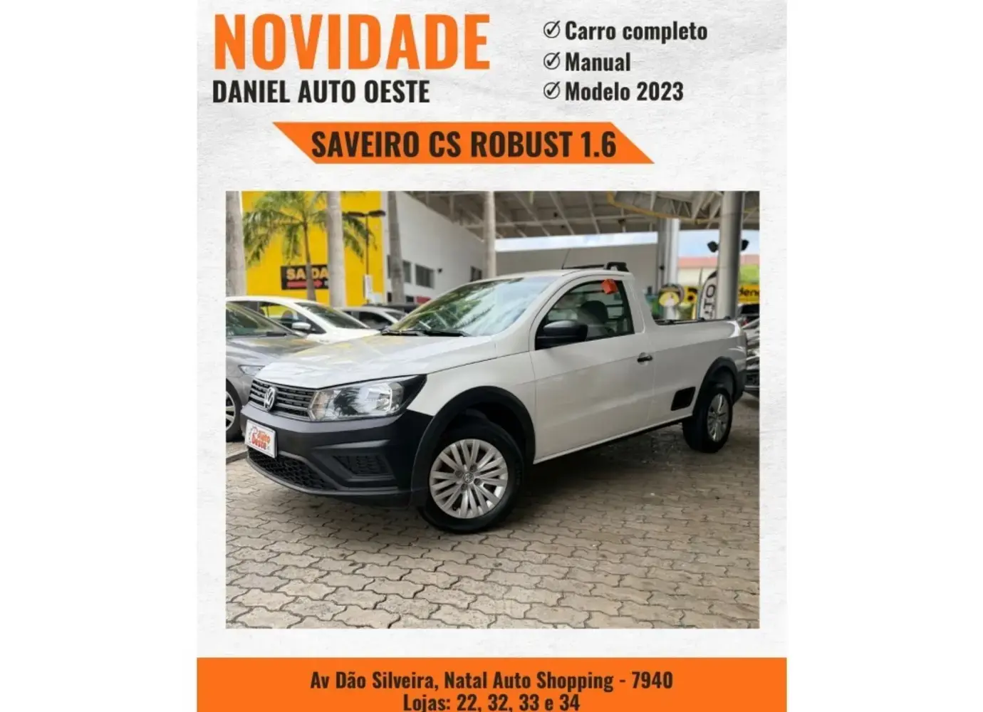 BEM-VINDO À DANIEL AUTO OESTE! Oportunidade!!! SUPER CARRO. VOLKSWAGEN SAVEIRO CS / 2023 * Veículo REVISADO * KM 64054 * Carro todo original A mais de 23 anos no mercado, (Aqui tem Procedência, Padrão e Qualidade). Daniel Autooeste: Av. Av. Dão Silveira, 7940 - Pitimbú, Natal - RN, 59066-180 - BR 101- ( NATAL AUTO SHOPPING ) Esperamos por você!