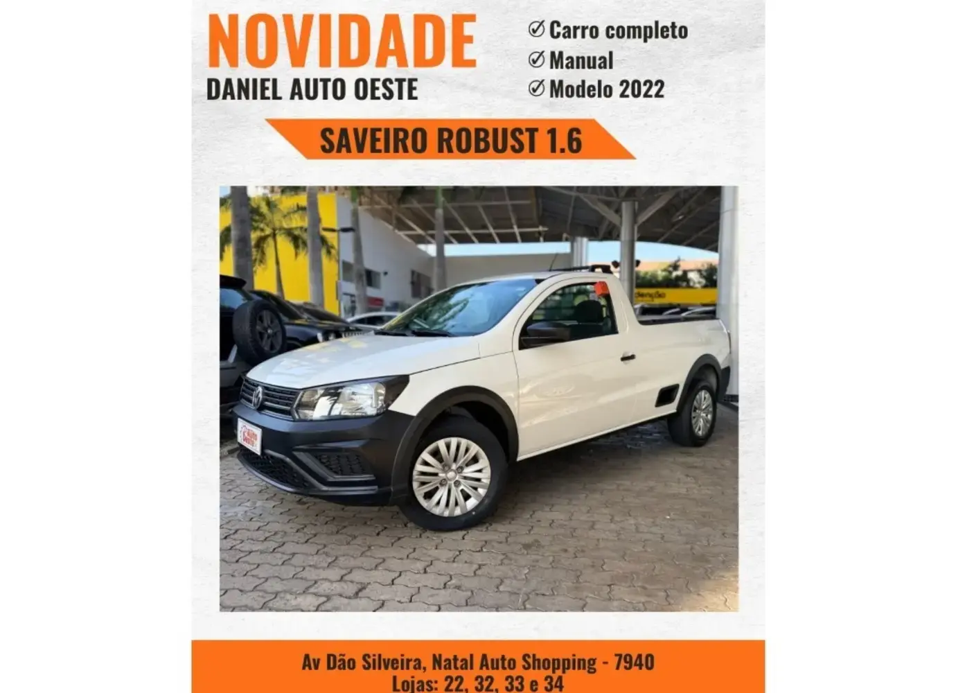 BEM-VINDO À DANIEL AUTO OESTE! Oportunidade!!! VOLKSWAGEN SAVEIRO / 2022 * Veículo REVISADO * KM 53738 * Carro todo original A mais de 23 anos no mercado, (Aqui tem Procedência, Padrão e Qualidade).Daniel Autooeste: ( NATAL AUTO SHOPPING )Esperamos por você!