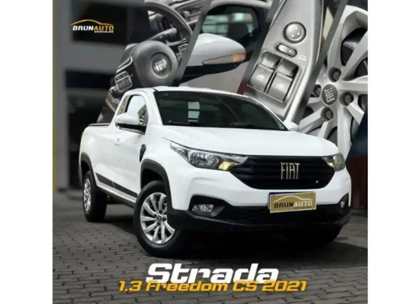 Fiat Strada Freedom CS 1.3 2021Picape robusta, econômica e versátil, ideal para trabalho e uso diário.Modelo Freedom, com ótimo desempenho e confiabilidade mecânica.Disponível na Brunauto Veículos. Outros Opcionais: Comando de áudio no volante, Controle de estabilidade, Direção Elétrica, Distribuição eletrônica de frenagem, Farol de neblina.